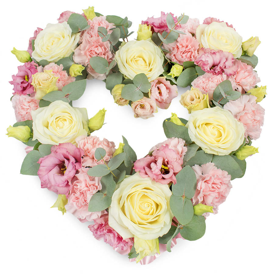Show your heartfelt sympathy with our gracefully designed tribute bouquet. This stunning arrangement showcases a delicate mix of white roses, pink carnations, pink lisianthus, and fragrant eucalyptus leaves, each flower hand-selected for maximum freshness and beauty.